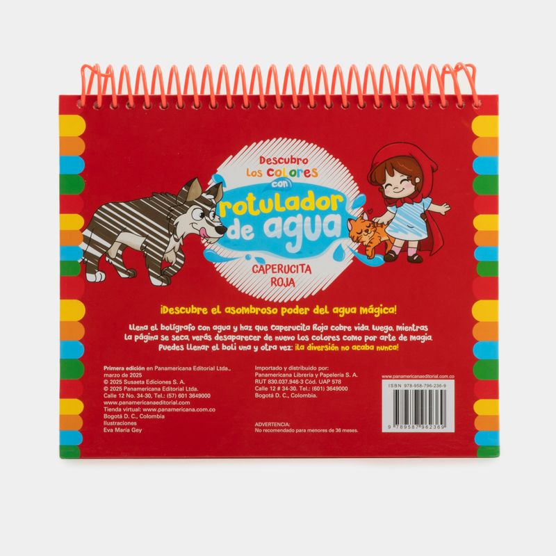 El tradicional cuento de Caperucita Roja llega aquí con colores mágicos que aparecen y desaparecen. Solo tienes que llenar el bolígrafo adjunto con agua y divertirte coloreando una y otra vez.